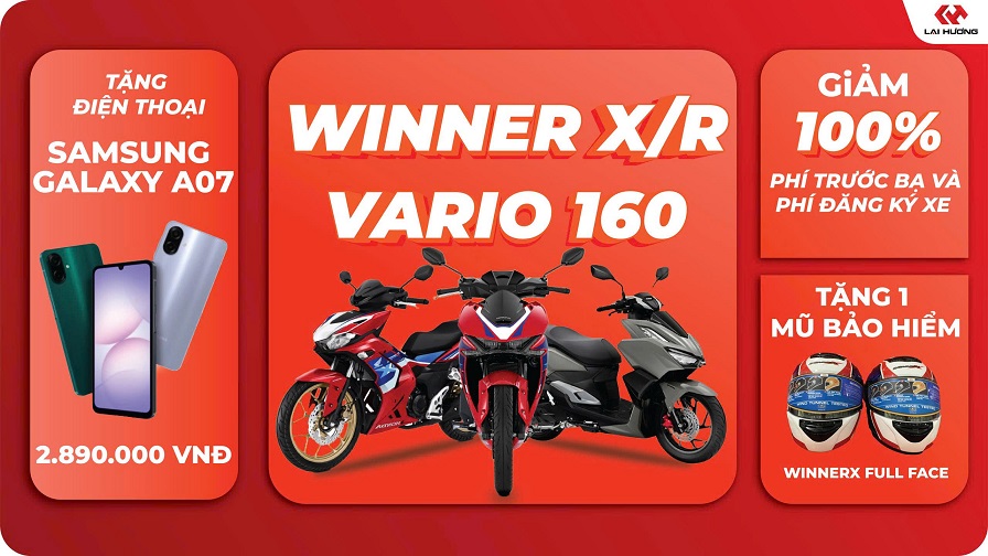 Cơn mưa quà tặng xịn xò dành cho khách hàng chốt đơn Winner X, Winner R, Vario 160 tại Hệ Thống HEAD Lai Hương