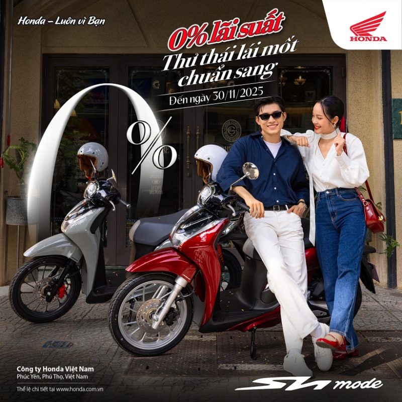 🔥 Từ đây đến ngày 30/11/2025, đừng bỏ lỡ cơ hội lên đời xe sang với ưu đãi trả góp lãi suất 0% khi mua Honda Sh mode – chiếc xe không chỉ cuốn hút bởi thiết kế sang trọng, công nghệ tiện ích và khả năng vận hành êm ái, mà giờ đây còn dễ dàng sở hữu hơn bao giờ hết.