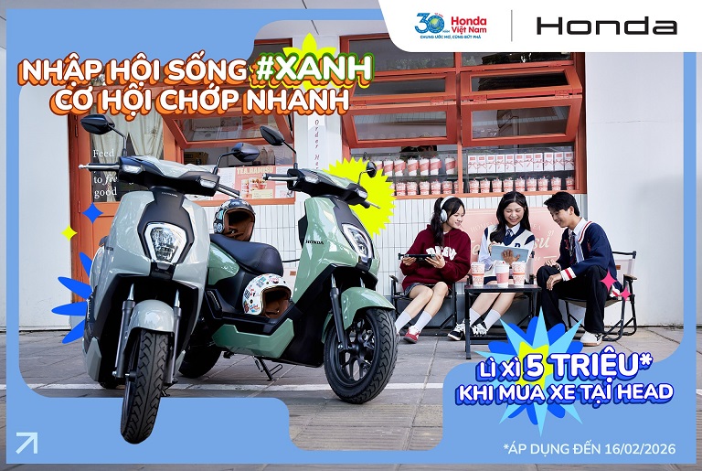 Thời điểm lý tưởng để gia nhập hội sống xanh cùng xe gắn máy điện Honda ICON e: chính là NGAY LÚC NÀY, vì đang có ƯU ĐÃI TẶNG NGAY* lì xì tiền mặt trị giá 5.000.000 đồng/xe khi mua xe gắn máy điện Honda ICON e: tại Hệ Thống HEAD Lai Hương.